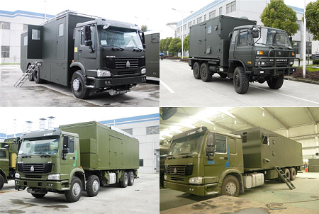 车载设备,左上:车载信息支持中心;右上:车载中频雷达和大气重力波成像仪;左下:车载Na层测风测温激光雷达接收系统;右下:车载Na层测风测温激光雷达发射系统。