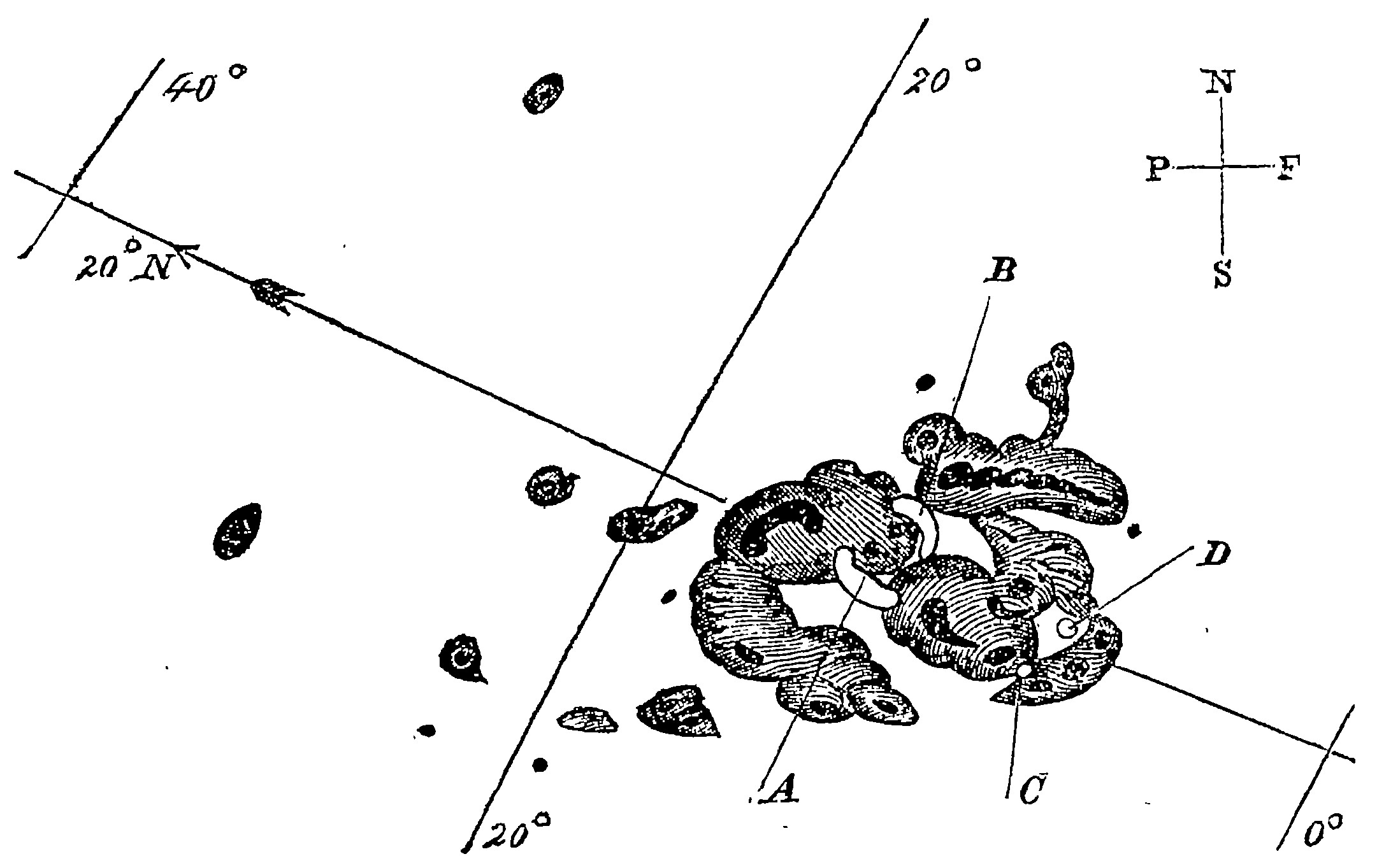 1860年7月18日,一个叫Gugliemo Tempel的意大利人在西班牙观测日全食时手绘了一幅图像。图中除了常见的结构外,右下角有一团状物。当时并没有引起世人注意。