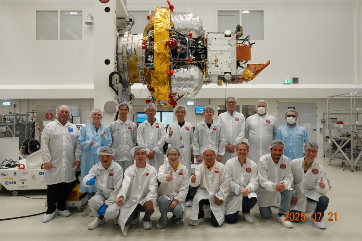 紫外极光成像仪(UVI)是 SMILE 卫星的四台载荷之一,由国家空间科学中心(NSSC)和欧洲航天局(ESA)合作研制。在SMILE卫星完成模飞、整星力学试验和热真空试验等大型试验后,于2025年7月21日,在荷兰欧洲航天技术中心(ESTEC)洁净间,对UVI进行了首次遮光罩保护盖开盖试验,保护盖成功使用热刀热切割器实施开启。来自国家空间科学中心、中科院微小卫星创新研究院、空中客车公司和欧洲航天局的UVI团队参加了此次试验。这是SMILE卫星转运前重要的联合活动之一。