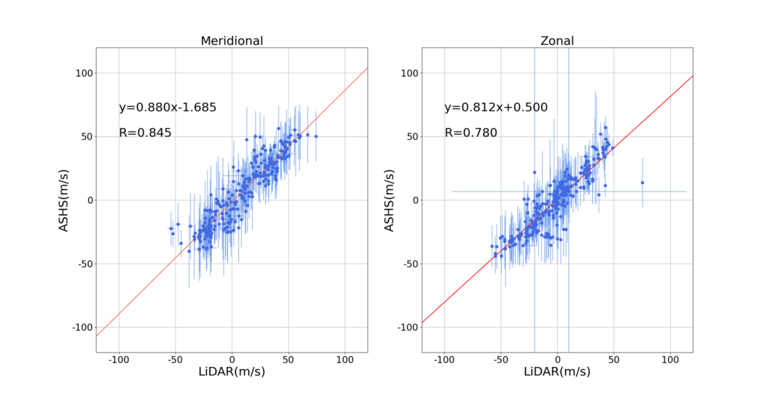 图3:漠河站ASHS干涉仪与激光雷达对5日中性风观测数据的相关性比较