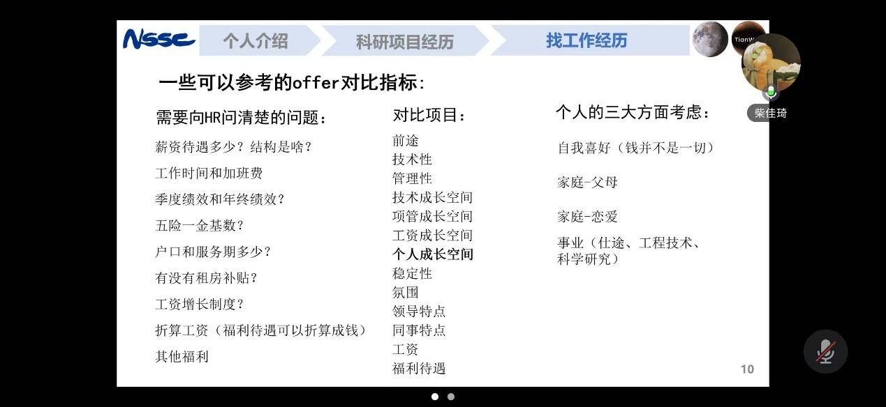 赵振兴同学主要分享了就业方面的内容。从求职策略、面试技巧到职业规划,全方位解析博士生的就业突围之道。