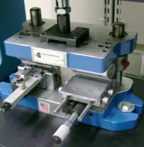 质保中心于2009年引进美国Fancort公司的5000L气动芯片引脚成型机,并配置了F1B/3A—单边通用型芯片引脚成型夹具。可满足QFP、FP等各种封装形式的芯片引脚切割和成型要求。可将平面封装芯片塑型,满足回流焊工艺要求,也可以简便且精确的应用于表面贴片封装芯片的成型要求。F1B/3A是行业中最易成型和成型尺寸最精确的工具,可提供最好的精度和一致性,并可同时完成引脚无毛刺切割。