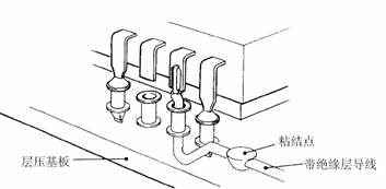 a)切头引线没有连接线及切头引线带穿过通孔到印制板的连接线