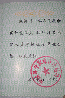 计量检定人员具有注册二级计量员证书。计量检测室通过了国家质量监督检验检疫总局的认证,是中科院京区计量测试站成员,可为空间中心和中科院其它单位提供多种电学测量仪表的计量检定服务。