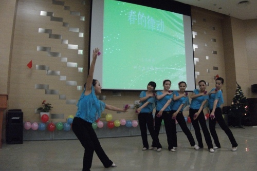 最后一个节目是由六个活泼可爱的研一女生带来的小合唱《姐姐妹妹站起来》,她们青春靓丽的造型和清脆响亮的歌声博得了阵阵掌声,她们边唱边邀请了台下六位男生共舞,让全场气氛达到了高潮。