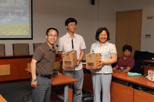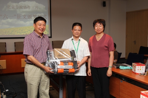 随后,颁奖仪式开始,空间中心妇委会副主任于岷为征文活动三等奖获得者颁奖,综合办公室主任范全林为征文活动二等奖获得者颁奖,党委副书记黄康平为征文活动一等奖获得者颁奖。