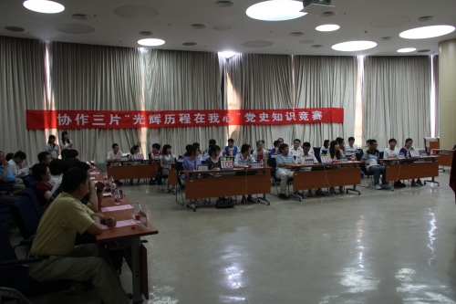 知识竞赛在嘹亮的国歌中拉开帷幕。片长黄康平首先致辞,介绍了举办这次党史知识竞赛的背景和重要意义,希望通过这知识竞赛,共同缅怀我们党90年来走过辉煌历程,进一步了解党在各个时期做出的历史性贡献。