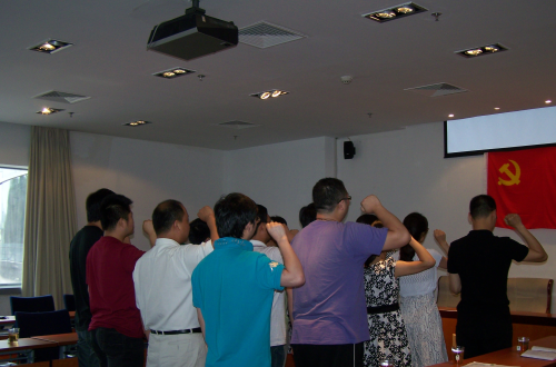 首先,支部书记邓丽同志向全体党员宣布此次活动的意义和目的,然后每位党员交流自己入党时的情景,并结合自己的工作实际,围绕“当初入党为什么?现在为党做了什么?”进行主题发言,既对自身表现与实际行动作了自我检查,同时也重新树立了奋斗目标。最后,举行重温誓词仪式,由宣传委员李大林同志领誓,支部全体党员均庄严的在党旗前再次宣誓,坚定永远跟党走的决心。
