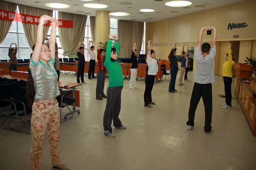 为进一步贯彻落实党的群众路线教育实践活动,推动中心职工健身活动开展,空间中心党办牵头举办八段锦培训班,利用周二、周四中午时间,邀请中科院武协资深老师授课,讲解八段锦基本动作,普及简单易掌握的健身运动,力求将中国传统健身方法变为职工锻炼的有效形式。