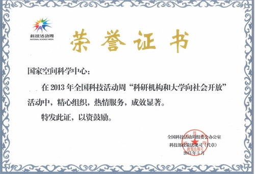 近日,空间中心因在“第九届公众科学日”活动中精心组织、细心接待、热情服务,获得了由全国科技活动周组委办公室、科技部政策法规司联合颁发的荣誉证书。