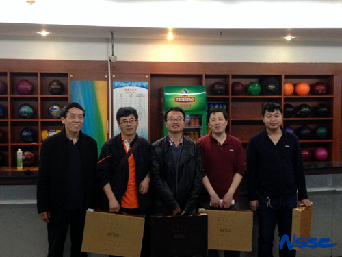 下午2:30,比赛在各赛道上同时展开,参赛选手热情饱满,赛场气氛热烈,欢声笑语和喝彩声不断。比赛进行的紧张激烈。在第一局小试牛刀后,选手们熟悉了球道,状态开始变好,在第二局中,第7道的高辉和第5道的李昌宏,以及第3道的陈明亮(在第3局),发挥出色,分别打出了199分, 175分和197分的全场最高分数。两局结束,排在前两名的是312分的高辉和295分的李昌宏,第三局是他们冠亚军之争的关键之战,因此比赛扣人心弦,紧张而又激烈,双方不仅要比水平,更要比心理素质和稳定性,比赛中高辉发挥一般,仅得到了135分,而之前落后17分的李昌宏,表现出良好的心理素质,发挥稳定,一分一分追,最终以154分拿下第三局,从而以三局总分449分的成绩获得冠军,而高辉以两分之差447分屈居亚军,其它奖项也各有归属,程永强、陈明亮、潘奎英获得二等奖;苏举、潘艺升等9人获得三等奖;另外,何安丽、任玉娇、吴晓霏、冷双等四位女选手在女选手中排名靠前,也获得三等奖。