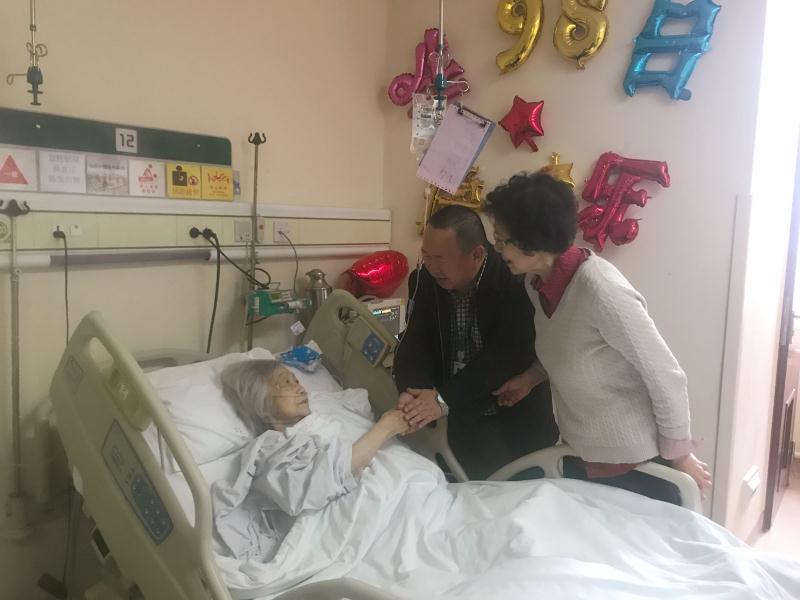 4月23日,中心党委书记孟新同志前往医院看望离退休老党员、老红军宋纯光,并祝贺老人98岁生日。