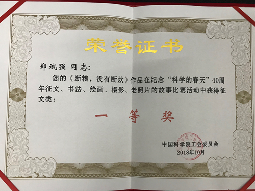 根据院直属机关党委、离退休干部工作局统一部署,院工会组织开展了纪念科学的春天40周年征文、书法、绘画、摄影、老照片的故事系列活动。自活动启动以来,空间中心高度重视,广大退休职工积极响应、踊跃参与,屡创佳绩。经评审,空间中心取得了一等奖2个,二等奖 2个,三等奖2 个,优秀奖10个的好成绩。