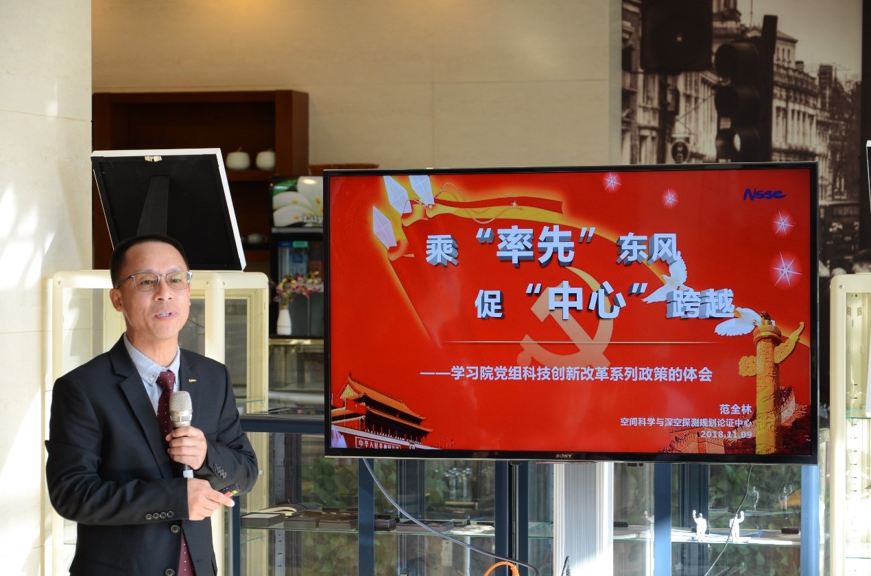 空间科学与深空探测规划论证中心副主任范全林,以“乘‘率先’东风,促‘中心’跨越”为题,从科技创新改革面临的新形势、重大科技任务使命、空间中心未来发展等3个方面报告了学习院党组科技创新改革系列政策体会。精彩的报告引发大家强烈反响,踊跃提问。