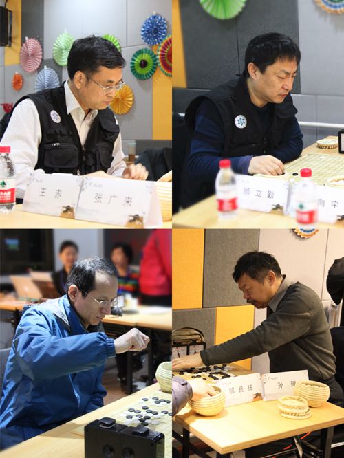 空间中心工会棋牌协会组织中心围棋优势力量,组成了以王赤、孙臻、师立勤、蔡春林四位棋手为队员的强大阵容参赛。首轮比赛,出师不利,在王赤主任屠龙速胜后,孙臻和师立勤都因为超时被判负,其中孙臻是在大优的情况下超时,非常可惜。蔡春林没能抓住稍纵即逝的机会一举击溃对手,输给了个人赛冠军。