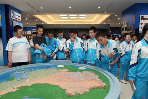 图三:怀柔101中学的学生们驻足子午工程演示沙盘