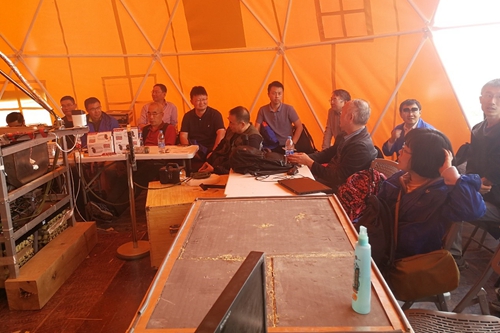 董晓龙详细询问了试验队员们在营地高原条件下的测试工作和生活情况,向全体试验队员表示了最诚挚的慰问,并预祝本次放飞任务取得圆满成功。他勉励试验队员们要在高原恶劣的工作环境中保重身体,在后续载荷测试、与载荷舱及平台集成测试、全系统拷机和空间环境预报保障工作中,精心组织、科学安排、扎实工作,确保按计划完成试验任务。