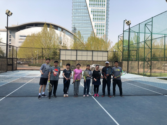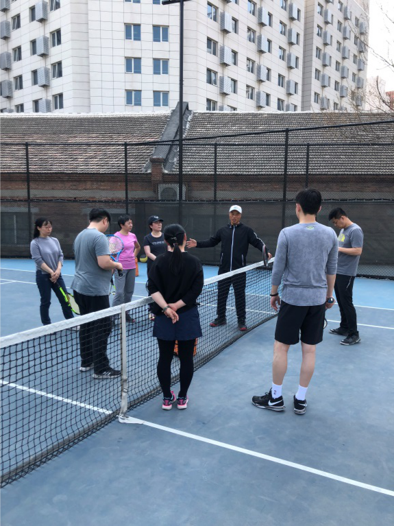 4月7号,天晴了,风停了,花开了,霾散了,中国科学院国家空间科学中心网球协会组织了本年度第一场活动。由于是第一次活动,有很多新手,活动特邀教学经验丰富的李教练为大家现场指导。他先让大家练习颠球,找控制球的感觉,再学习如何握拍,耐心讲解正手挥拍姿势和发力要领,一一纠正动作。大家发现打固定点的球比较容易,一旦距离比较远就很难找准击球点,还需要大量练习。李教练还组织大家男女搭配进行双打比赛,调动大家积极性。不知不觉中,利用午休时间进行的培训结束,网球协会第一次活动在一片欢乐祥和的气氛中结束了。