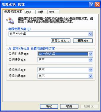 所以我建议,在我们每天休息时间里,尤其是在中午两小时,请将不用的电脑和显示器关闭,或者在我们的电脑“显示属性”的“电源选项”设置一栏里,将“关闭监视器”选项设置为一时间值(例如10分钟之后)。这样即使我们忘记手动关闭显示器,到一定时间电脑也会自动关闭显示器,达到节约的目的。