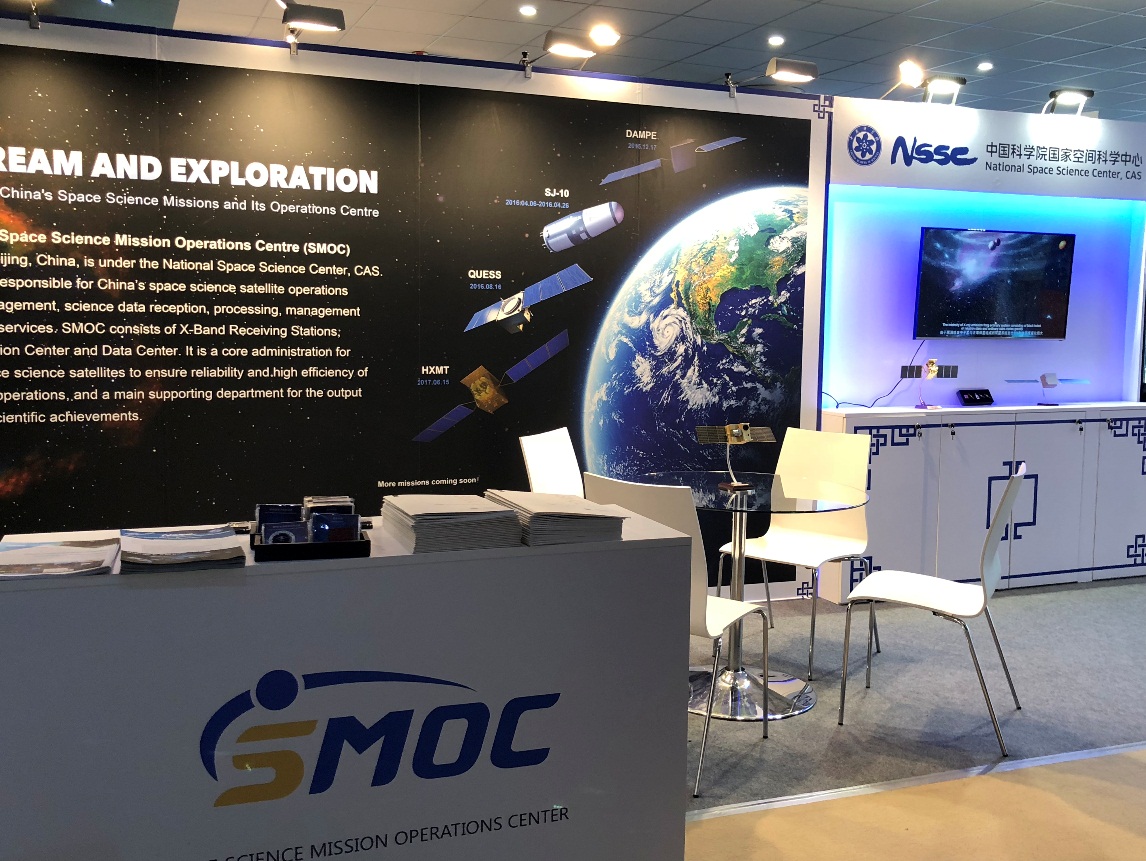 2018年5月28日至6月1日,由科学卫星综合运控中心(Space Science Mission Operations Center, SMOC)、空间科学工程管理中心和综合办公室联合主办的以“空间科学卫星工程及其运控中心”为主题的展览成功参展第十五届国际运控大会(The 15th International Conference on Space Operations,Space OPS 2018)。此次展会主要展示了空间科学先导专项一期科学卫星任务基本情况、运行状态和初步科学成果,向国际同行介绍了科学卫星综合运控中心的现有能力、技术性能和系统特点等。展览内容受到了参会和参展机构和人员的高度关注,大家对中国空间科学卫星工程的迅速发展和取得的丰硕成果感到惊讶,很多参会人员在展位围绕卫星的运行状态、数据接收站、星地链路等进行了深入详细的现场咨询,也表达了与运控中心在空间科学领域加深双边和多边合作的意向。