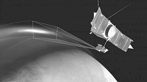 科学家在火星上发现北极光。图片来源:NASA 美国国家航空航天局(NASA)于11月5日公布了关于火星大气的一系列观测结果,并阐述了火星大气层为何会如此之薄。 地球有北极光与南极光:当地球磁场将来自太阳的电子和质子向极地地区输送时便会引发这种夜间发光的现象,这些高能粒子能够激发大气气体分子并使其发出荧光。 而在火星上,人们或许会认为这种极光现象非常普遍。这是因为缺乏一个内在磁场的火星无法将太阳的高能粒子引向这颗行星的极点。 NASA的科学家于11月5日报告说,他们利用“火星大气与挥发物演化”(MAVEN)探测器发现了一个极光的证据,进而表明极光并非整个夜晚发生在这颗行星的全部表面。 于2014年开始环绕火星运转的MAVEN探测器揭示了这颗红色星球的大气层是如何变得如此之薄的,相关研究结果于11月5日以3篇论文的形式相继发表在美国《科学》与《地球物理通讯》杂志上。 其中一篇论文解释了太阳风暴是如何侵蚀火星大气层的;另一篇论文则分析了在非常高的高度检测到的星际尘埃;第三篇论文详细说明了MAVEN探测器在一次潜入火星大气层和电离层过程中发生的大气分子的混合。 NASA当天公布的火星大气观测结果显示,太阳风可能是剥夺火星大气的罪魁祸首,导致这颗红色星球从像地球那样温暖、湿润的行星变成一个干燥、寒冷的沙漠世界。 来自MAVEN探测器的观测发现,即使在今天,太阳风每秒钟仍在带走约100克的火星大气。 今年3月,一系列太阳风暴袭击火星,上述探测器发现,火星大气的“腐蚀”问题在此期间加重。考虑到太阳“年轻”时太阳风暴更加常见,研究人员认为,火星大气的损失速度在40亿年前的太阳历史早期比现在要“高很多”,甚至火星大气“相当可观”的损失都可能发生在早期。 结果就是,40亿年前曾非常致密的火星大气层,到今天其密度只有地球大气层的1%。 那么,太阳风是怎么带走火星大气的呢?NASA解释说,太阳风是来自太阳的高速粒子流,当它抵达失去磁场保护的火星后,会产生一个电场,加速火星大气中被称为离子的带电原子,令其逃逸至太空中。地球上之所以不会有这种情况发生,是因为地球磁场在保护地球大气层不受太阳风的影响。 NASA认为,弄清楚火星大气逃逸之谜,有助认识行星大气的演化过程,也是载人火星之行必须解决的一个关键问题。 MAVEN探测器于2013年11月发射,是第一个研究火星上层大气的探测器,现已在火星轨道上运行约一年时间,其主要任务期将于本月16日结束。该观测器由洛克希德·马丁空间系统公司建造和测试,其设计基于此前的MRO以及火星奥德赛。探测器本体尺寸2.3×2.3×2米,有两个太阳能帆板,末端是磁强计,总长度11.4米。NASA提供了无线电通讯中继包,其数据转发速率高达10 Mbit/s。 |