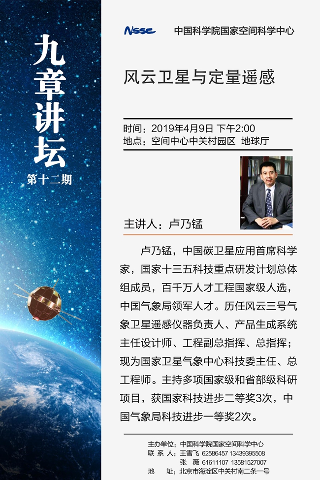 (4月9日)九章讲坛第十二期——风云卫星与定量遥感