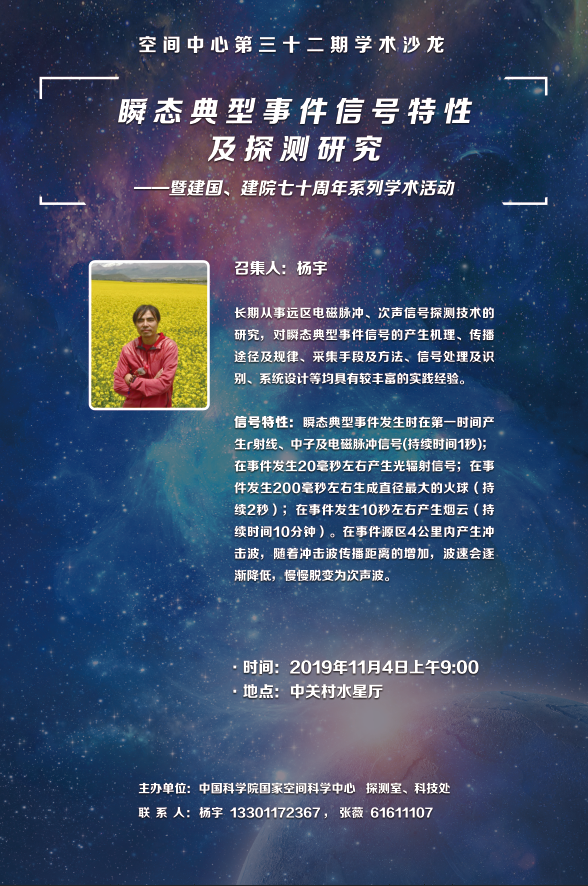 (11月4日)瞬态典型事件信号特性及探测研究——空间中心第三十二期学术沙龙