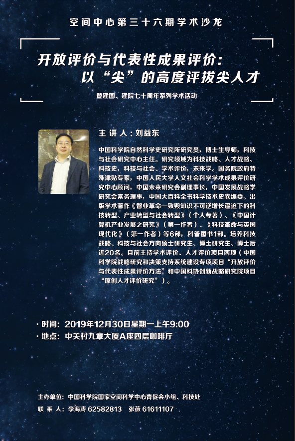 (12月30日)开放评价与代表性成果评价:以“尖”的高度拔尖人才——空间中心第三十六期学术沙龙