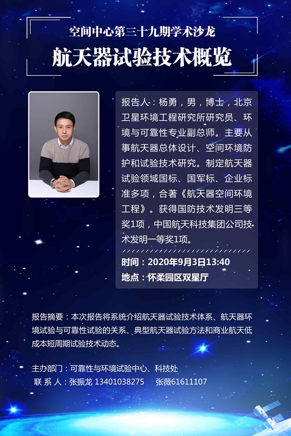 (9月3日)航天器试验技术概览——空间中心第三十九期学术沙龙