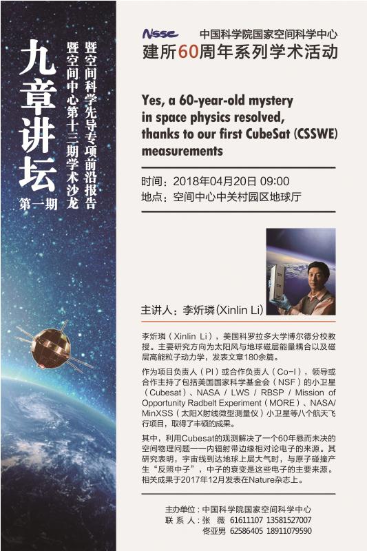 (4月20日)九章论坛第一期:Yes, a 60-year-old mystery in space physics resolved thanks to our first CubeSat (CSSWE) measurements
