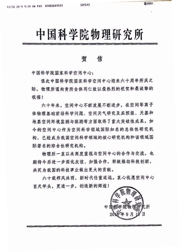 中国科学院物理研究所贺信