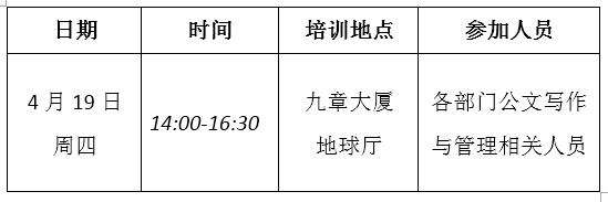 根据部门培训需求及中心培训计划,现定于4月19日组织开展中心公文写作培训。