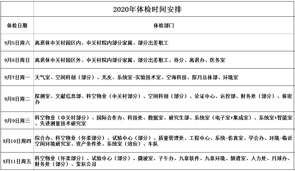 一、体检时间:9月5日—11日 ,早7:00——11:30(含周六、周日,工作日周一至周五),为减少人员密度,此次体检由5天调整为7天。