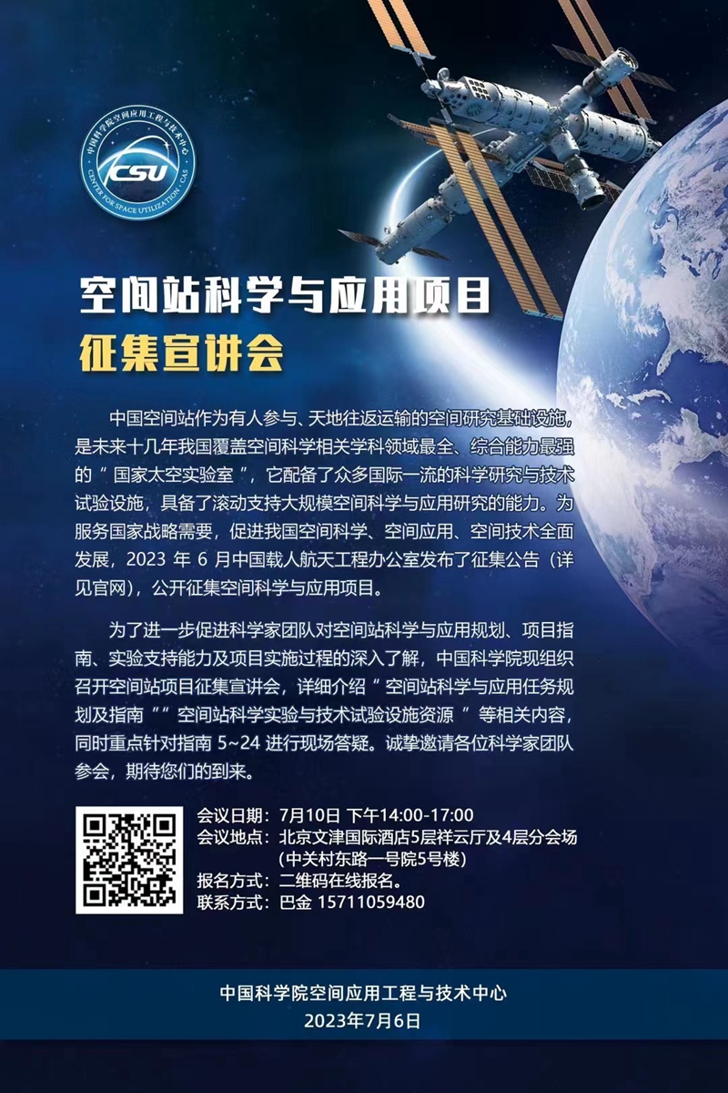 转发:空间站科学与应用项目征集宣讲会会议通知