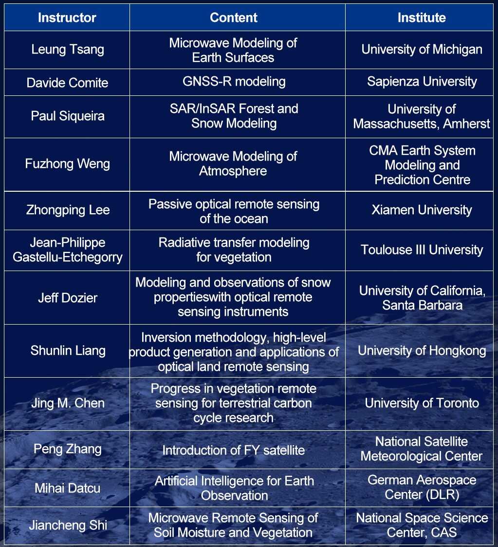 来自中国、欧洲和北美的知名遥感专家将面对面授课,围绕大气、海洋和陆表的理论建模及其卫星遥感产品应用向参与者系统介绍该领域的最新研究进展。报名通道现已开启,快来加入吧!