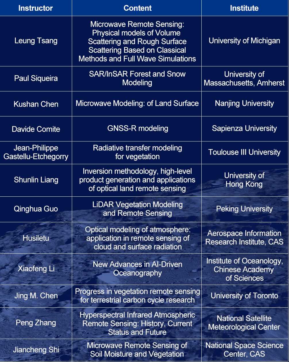 来自中国、欧洲和北美的知名遥感专家将面对面授课,围绕大气、海洋和陆表的理论建模及其卫星遥感产品应用向参与者系统介绍该领域的最新研究进展。报名通道现已开启,快来加入吧!