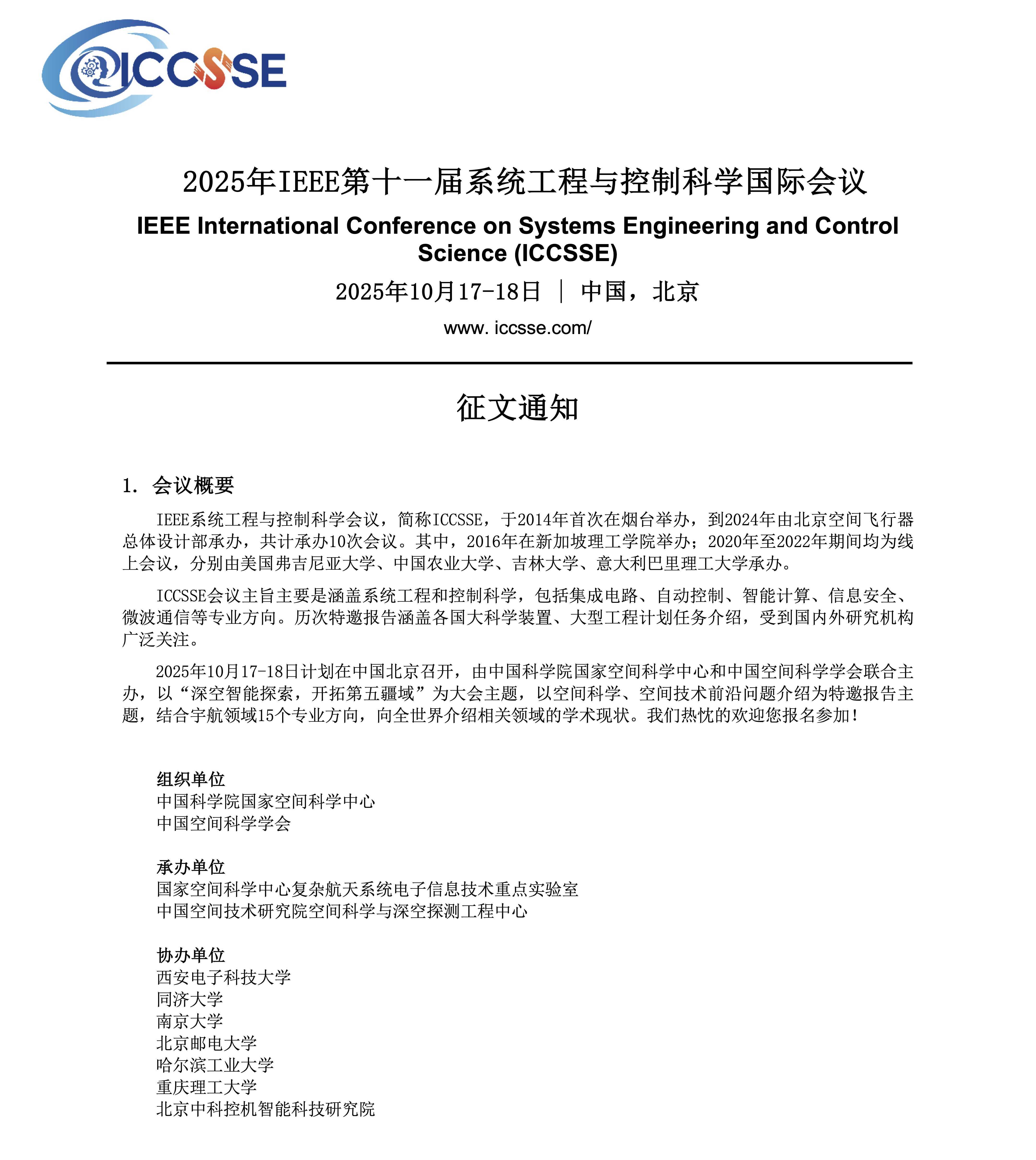 2025年IEEE第十一届系统工程与控制科学国际会议征文通知
