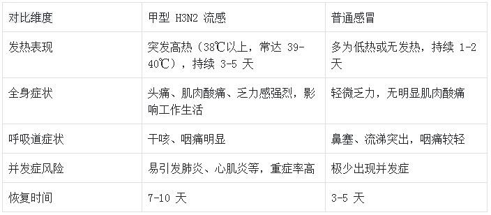 本次流行的流感病毒主要为甲型H3N2等亚型,其特点是传播速度快、潜伏期短、致病性强。主要症状包括:高烧(39°C以上)、咳嗽、喉咙痛、肌肉酸痛、头痛、乏力等。它与普通感冒不同,全身症状更重,且容易引起并发症。