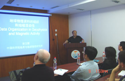 2006年5月9日下午2:00,来自中科院地质与地球物理研究所的徐文耀老师在盈都大厦A座28楼学术报告厅为空间天气实验室的研究生们做了一场题为《地球物理资料组织和地磁活动性》的讲座,这也是空间物理前沿系列讲座之二。参加此次报告的还有北京大学肖佐教授、北京大学地空学院空间物理与应用研究所所长付绥燕教授、空间天气实验室主任王赤研究员、空间天气学实验室秦刚研究员等老师。