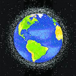 最近发布的报告显示,目前有5500吨太空垃圾围困地球。(假想图)(资料图片)