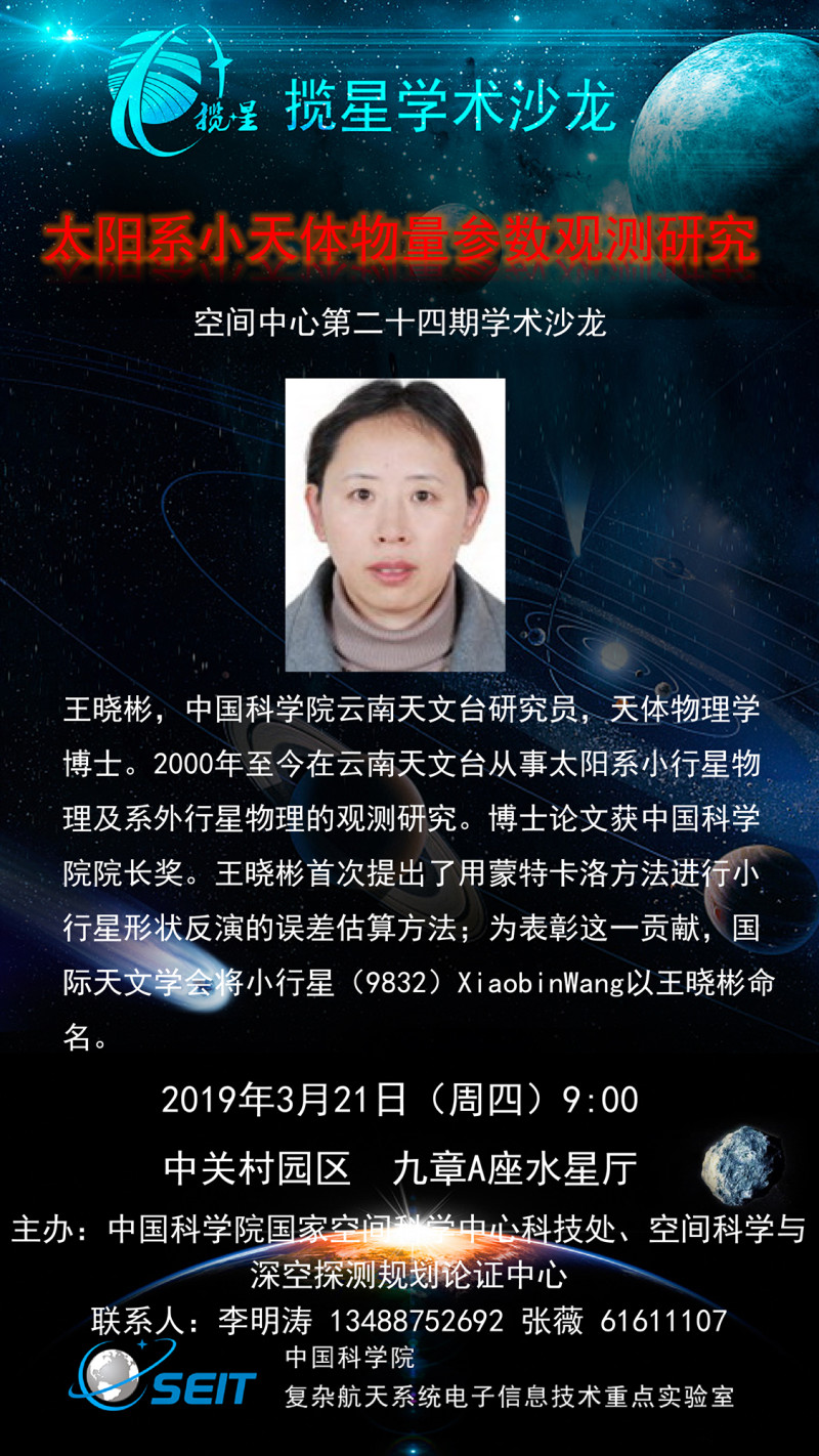 (3月21日)太阳系小天体物量参数观测研究——空间中心第二十四期学术沙龙