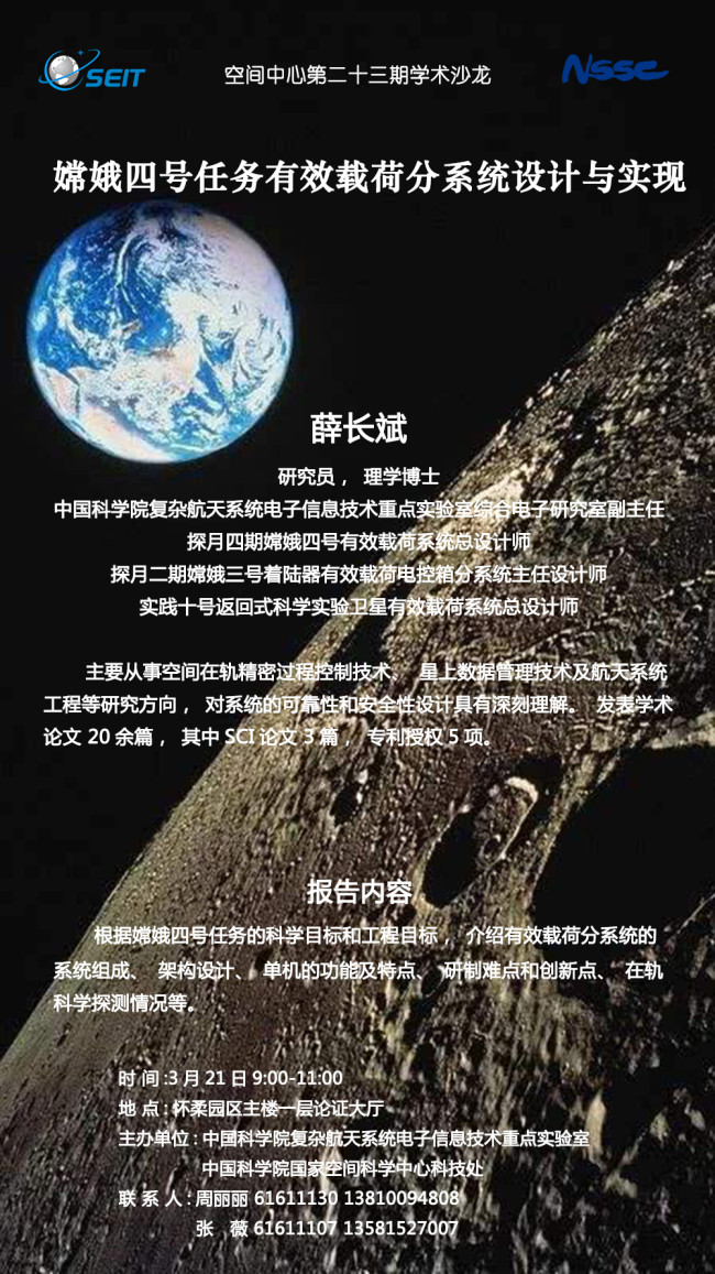 (3月21日)嫦娥四号任务有效载荷分系统设计与实现——空间中心第二十三期学术沙龙