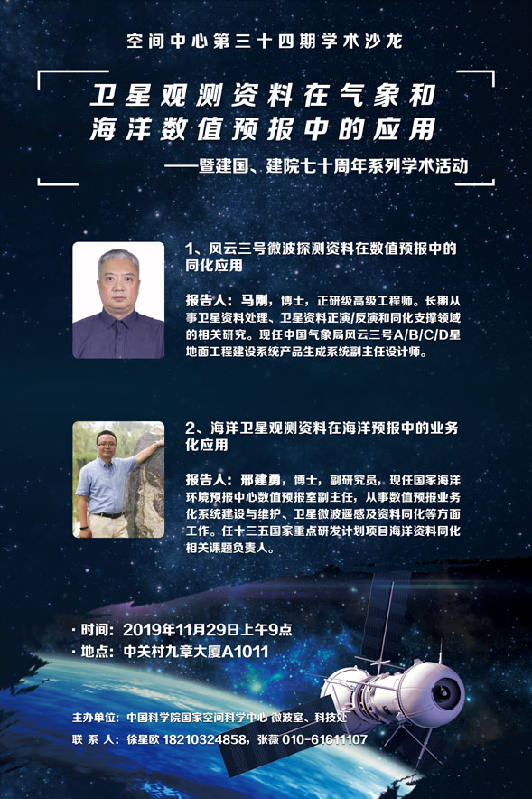 (11月29日)卫星观测资料在气象和海洋数值预报中的应用——空间中心第三十四期学术沙龙