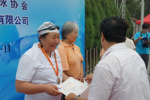 人头攒动进泳池,虽然业余也认真;你争我夺大家乐,锻炼身体意义深。