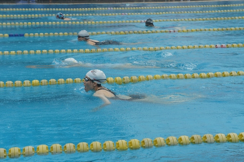 天气的闷热预示着暴雨的到来,临近中午,密集的小雨淅沥沥的落下,但运动员们丝毫不受影响,个个如同水中蛟龙一般。即使到最后小雨变成了大雨,也未浇熄大家的斗志。单项比赛,群雄逐鹿;团体接力,齐心协力。