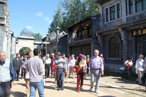 中国怀柔影视基地位于怀柔区杨宋镇,距北京45公里,占地5.6万平方公里,是目前我国规模最大、技术最先进的国家级影视数字制作基地。老同志们首先参观了服装区和道具区,馆内陈列有《建国大业》、《满城尽带黄金甲》等影片中演员使用过的服装和道具,大家一边参观,一边模仿影视作品中的动作,用照相机拍下了难忘的瞬间。接着,大家又来到了6号摄影棚参观,棚中有在《三枪拍案惊奇》中出现过的麻子面馆,电影中的很多主要场景都是在这里完成的。老同志们联想到电影中令人忍俊不禁的情节,都停下脚步,观赏起场景内的道具来。最后,大家来到了外景拍摄基地,这里是以仿明清建筑为主的街道、大戏院和前门楼子等老北京景区。通过参观老同志体验到影视文化给人们带来的乐趣。