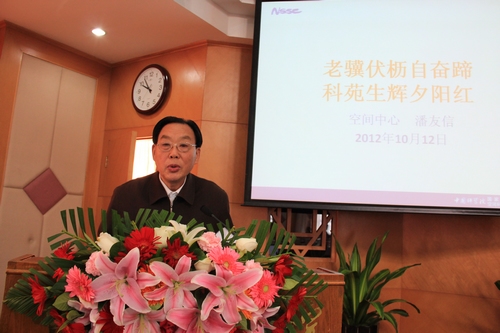空间中心作为京区单位的典型代表应邀做大会发言。退休副所长潘友信在视频大会上作《老骥伏枥自奋蹄,科苑生辉夕阳红》的报告。在“三老四促”创先争优主题活动中,潘友信和老科协的同志们一道在促进社会和谐、促进科学知识传播、促进文化大发展及扶贫助学方面做出了不平凡的贡献。