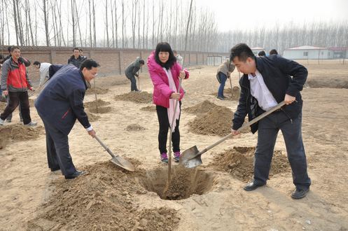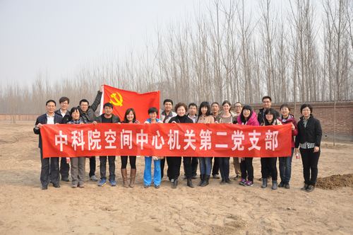 在植树活动中,全体党员、积极分子一起动手挥锹、栽树、培土、浇水,栽下一株株树苗,个个忙得满头大汗,以自己的实际行动为台站增添了一抹新绿。