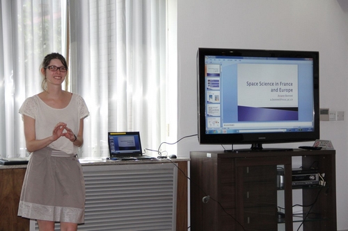 6月18日,国家空间科学中心团委举办“畅谈空间科学,分享工作感悟”青年学术沙龙,邀请2名国家空间科学中心外籍青年科技人员:国际空间科学研究所北京分部(ISSI-BJ)工作人员、来自法国的Ariane Bonnet,以及空间天气学国家重点实验室博士后、来自巴西的Francisco Carlos de Meneses Junior,与中心青年开展座谈交流。这也是国家空间科学中心青年学术沙龙首次邀请外籍青年作报告。