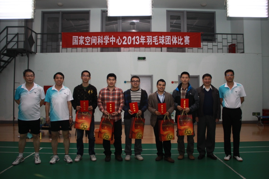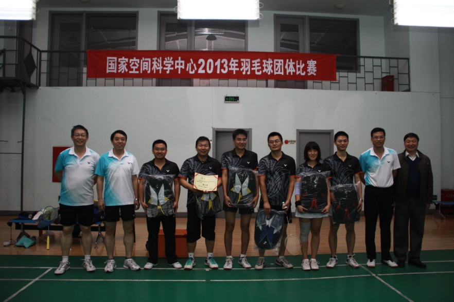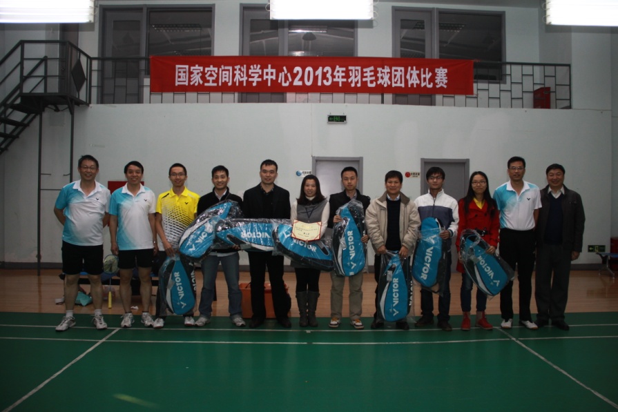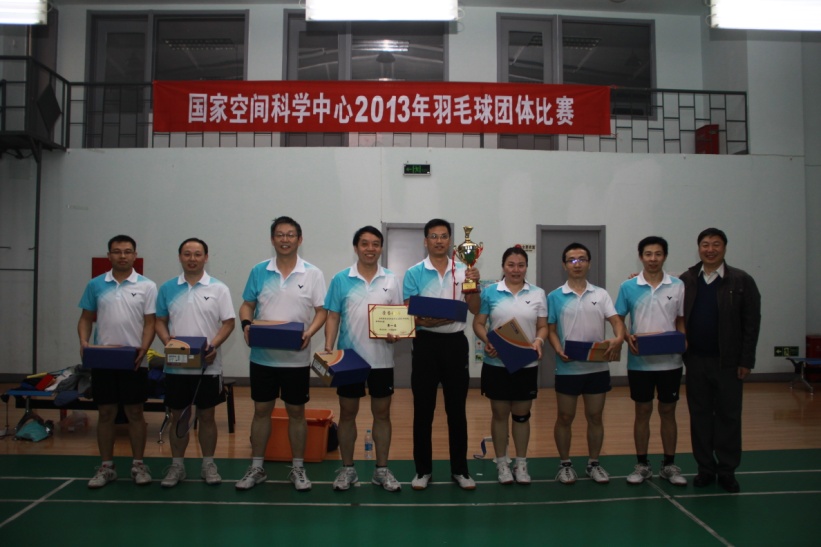 由空间中心工会羽毛球协会主办的国家空间科学中心2013年羽毛球团体赛决赛于10月28日在青云小区羽毛球馆正式打响,由上届冠军预报室对阵机关一队。经过激烈争夺,最终机关一队以2:1的总比分获得比赛的胜利,同时也将本次比赛的冠军收入囊中。赛后中心副主任王赤、龚建村,党委书记黄康平分别为获奖球队颁发了奖品和证书。 本次羽毛球团体赛共吸引了12支参赛队伍,中心职工、学生总计90余人参赛。从9月25日开始,经过了7个比赛日60多场比赛的激烈争夺,最终决出了比赛前八名,冠亚季军分别是:机关一队、预报室和天气室一队;四至八名分别是:空间环境探测室、太阳系探测室、天气室二队、卫星运控技术实验室和实验技术室。 本次羽毛球团体赛充分展现了协会会员积极参加羽毛球日常活动的成果,比赛整体水平较之往年有明显提高。在队员水平提高的基础上,很多参赛队伍水平都有了长足的进步,这也使今年的比赛更加精彩激烈,更具观赏性,同时充满了悬念。此次羽毛球团体比赛不但促进了会员之间的相互交流,也让更多人感受到了羽毛球运动的独特魅力,逐渐加入到羽毛球健身运动中来,更好地服务于科研事业,助力中心跨越发展。 (供稿:工会羽毛球协会、团委)  图一:团体冠军机关一队  图二:团体亚军预报室  图三:团体季军天气一队  图四:四至八名球队代表合影 |